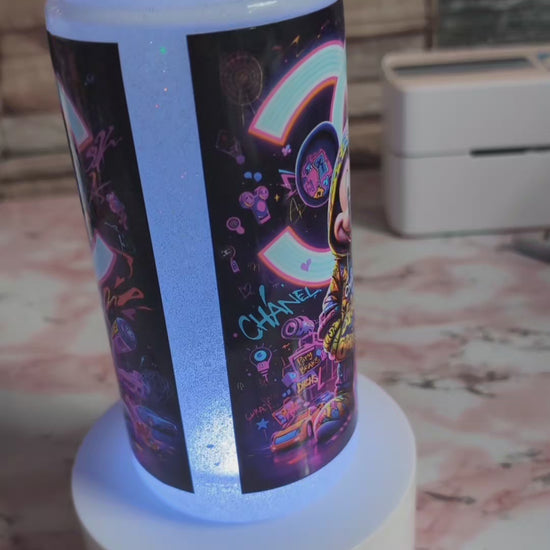 Verre Snowglobe 20 oz en plastique – Style Streetwear Néon (paille incluse)
