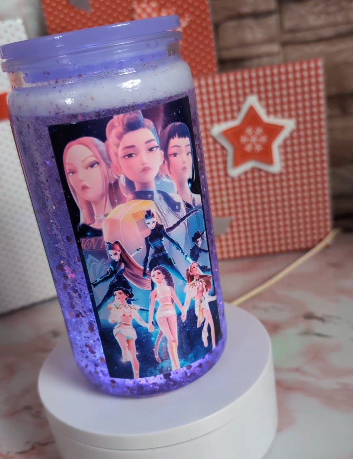 Verre Snowglobe Plastique – Girl Squad Hunter (Anime/K-Pop) Violet Holo | 16 oz / 20 oz